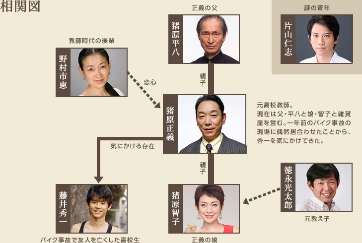 昭和53年の春、受験生の藤井秀一( 藤村直樹 )は二人乗りしていたバイクで転倒し、その事故で同乗していた友人を失ってしまった。夏休みの始まったある日、彼は事故の時の恩人である猪原正義(石丸謙二郎)の家を訪れる。元高校教師だったという正義は、失意の秀一にとってはまるで一個の理想の教師であるかのように思われた。彼は秀一に酒の飲み方を教え、勉強の仕方を教え、秀一とともに友人の死を全身全霊で悼んでくれた。やがて猪原家の滞在客となった秀一は、自分を励まし続けるこの正義という不思議に熱っぽい人物にぐんぐん傾倒してゆく。一週間が過ぎた日、秀一は思いもよらなかった正義の真の姿を知ることとなる……。