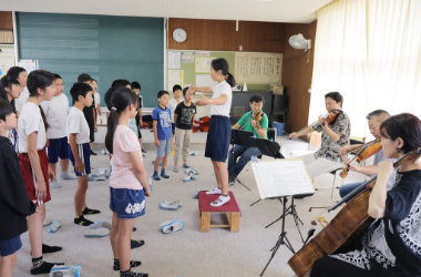 新日本フィルメンバーを地域の小学校、特別支援学校にお届け。音楽を聴くだけでなく楽器体験で音の鳴る仕組みまで学んだり、合唱や合奏でプロの演奏家との共演を体験。また、小さなお子さまなど普段、劇場に足を運んで音楽に触れることが難しい方でも安心して楽しめる、誰にでもオープンなクラシックコンサートを開催。