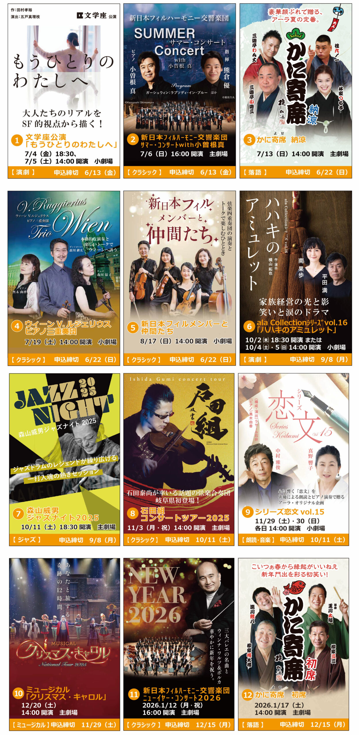 ・応募者多数の場合はご希望に添えない場合があります。申込結果は公演日2週間前までに郵送にてお知らせします。