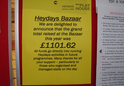 「Heydays」で創られる参加者による作品は、半期ごとに開催される館内バザーで販売されて、その売り上げは福祉機関などのパブリックな事業に寄付されています。そのことによって、高齢者が社会とつながっていることを実感できる仕組みが施されていることに感心させられました。高齢者が陥りやすい「社会的孤立と孤独」をHeydaysで結ばれる「つながり」と社会での「役割認識」で回避する制度設計がしっかりなされていました。高齢者にとって、「役割認識」は必要とされている存在としての自分を実感できる重要な心の動きです。自尊感情から育まれる「自己肯定感を生きるよすが」とする高齢者にとって大切な処方箋と言えます。「Heydays」を毎週水曜日に開催して、劇場の予算と人材を配していることも大切なことですが、そこで切り結ばれる個々の「つながりの構築」とあわせて、社会とつながっているという実感とリタイアしても自分が社会の役に立っている、社会に参加しているという「役割認識」にWYPという劇場のスタッフの心が配られていることに、私は心からの敬意を持ちました。