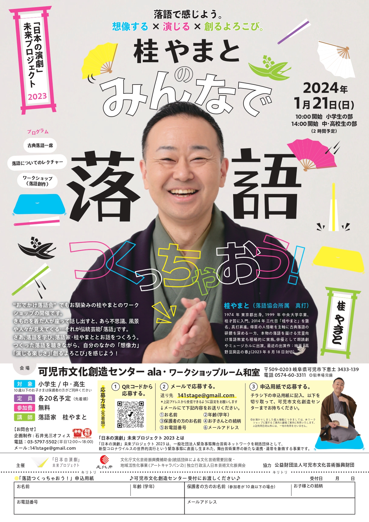 “おでかけ落語”でもお馴染みの桂やまとと落語を学び、お話をつくりましょう。
