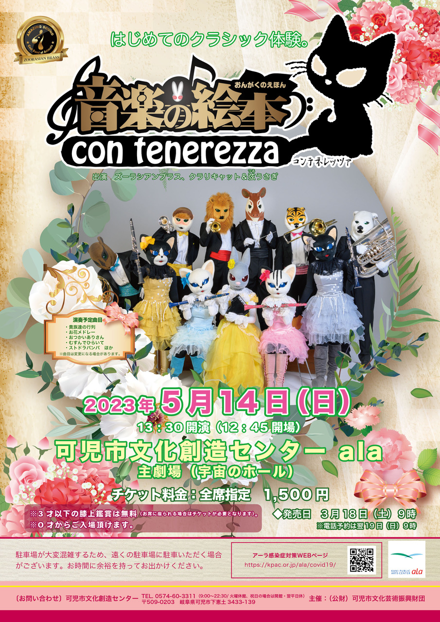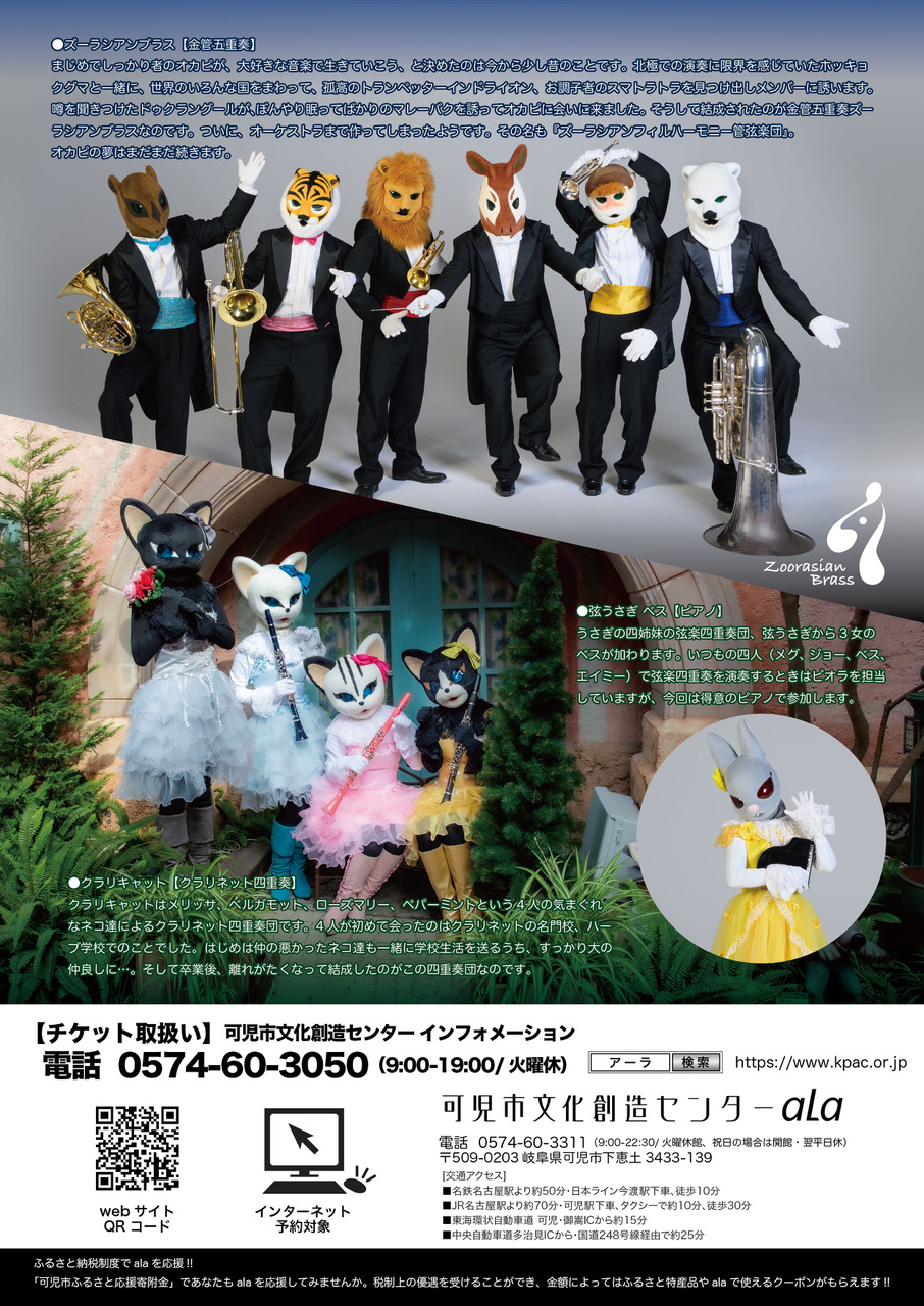 毎年恒例、個性豊かな動物たちが舞台で大活躍するコンサート。いつものブラスメンバーに加えて、今年はクラリネットのネコさんたちが登場!クラシックや童謡など親しみやすい曲が満載のプログラムを、愛情たっぷりにお届けします。