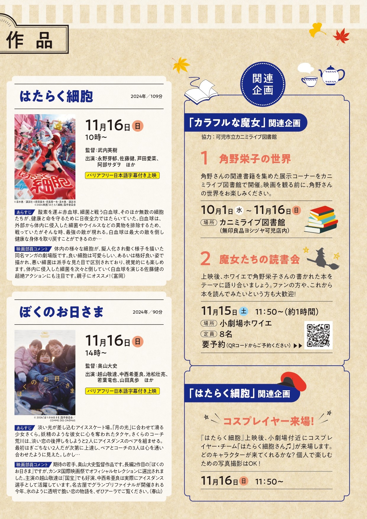 上映後、ホワイエで角野栄子さんの書かれた本をテーマに語り合いましょう。ファンの方や、これから本を読んでみたいという方も大歓迎!