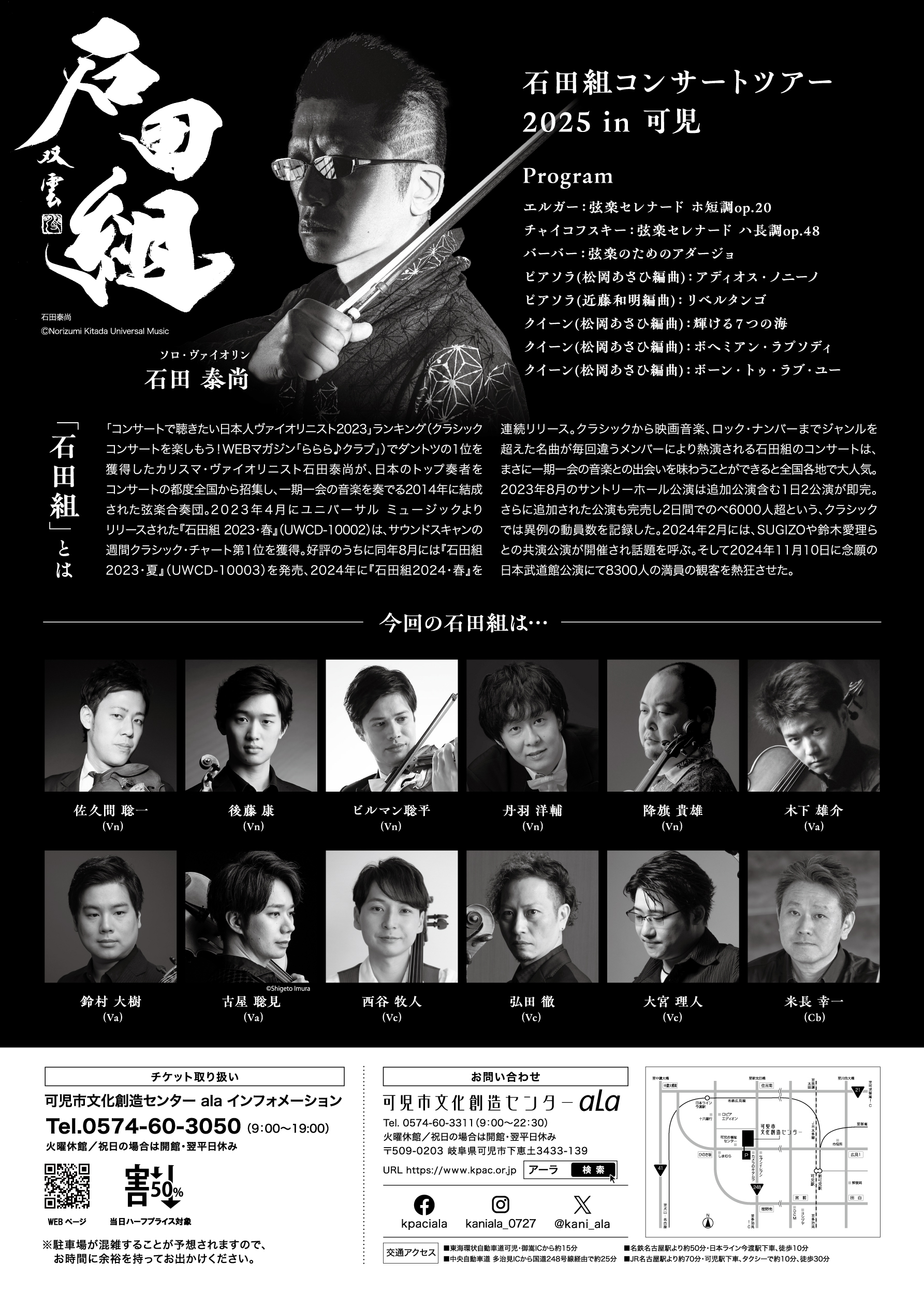 石田泰尚率いる話題の弦楽合奏団岐阜県初登場!
