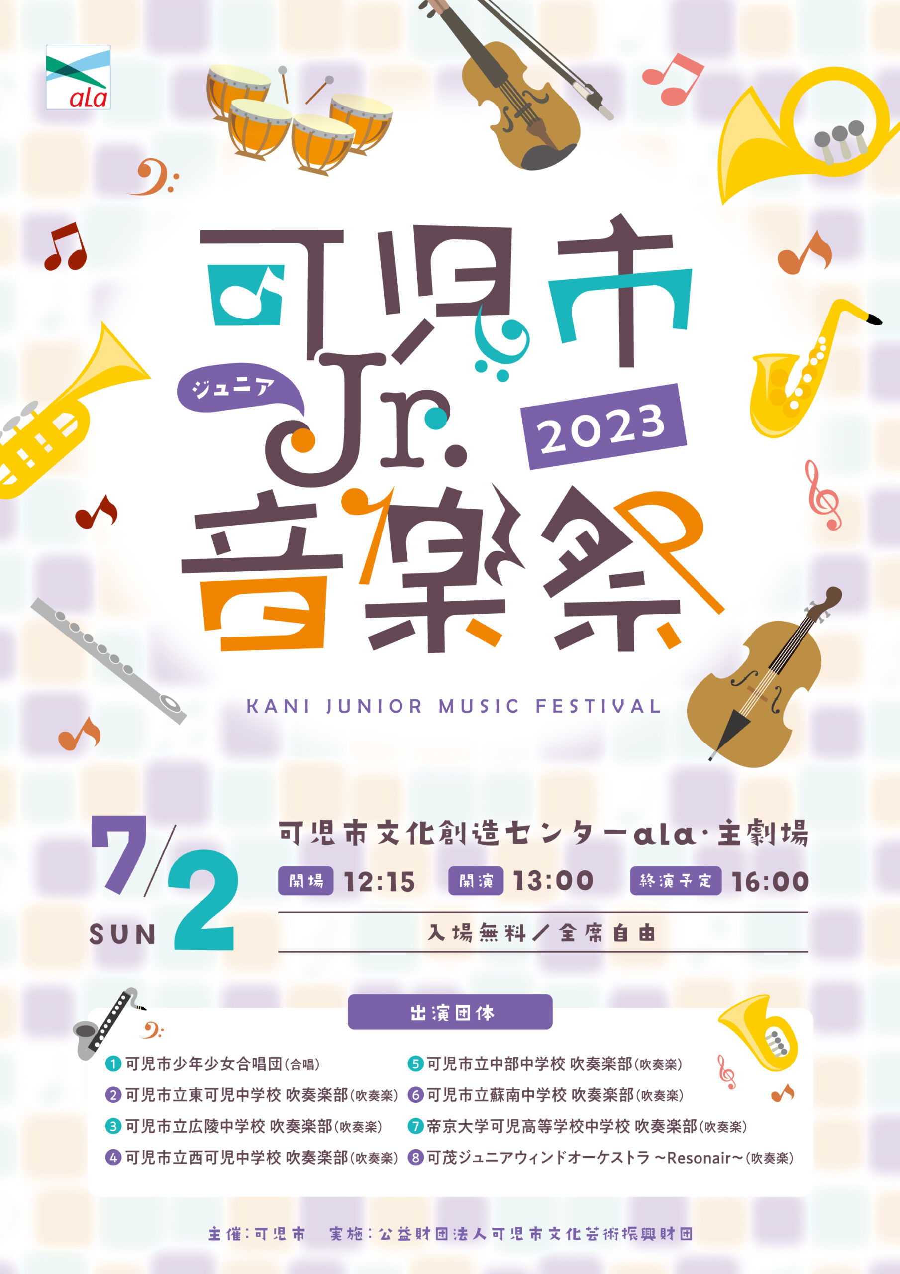 【出演団体(出演順)】・可児市少年少女合唱団・可児市立東可児中学校 吹奏楽部・可児市立広陵中学校 吹奏楽部・可児市立西可児中学校 吹奏楽部・可児市立中部中学校 吹奏楽部・可児市立蘇南中学校 吹奏楽部・帝京大学可児高等学校中学校 吹奏楽部・可茂ジュニアウィンドオーケストラ~Resonair~