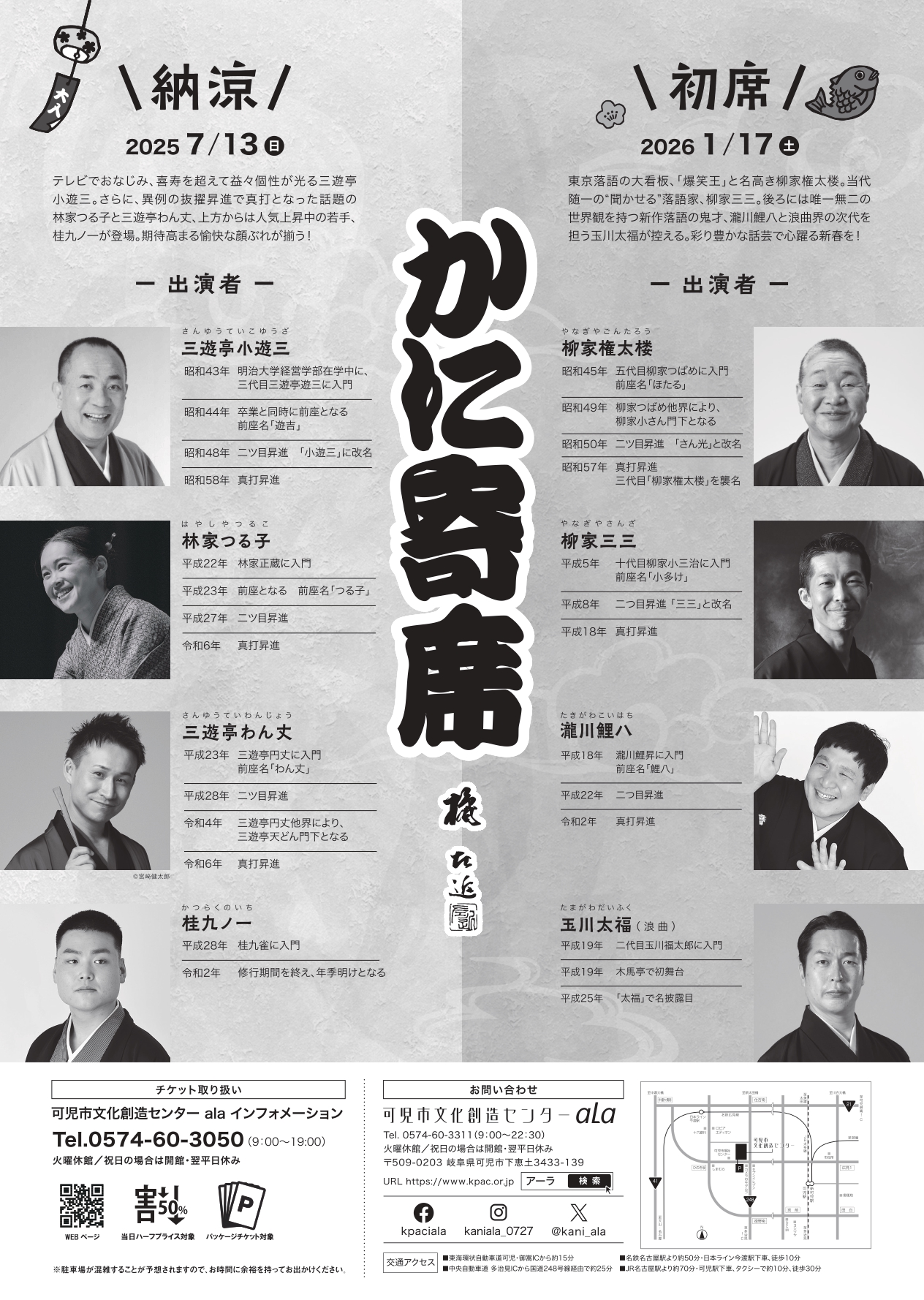 笑点の人気者三遊亭小遊三、異例の抜擢昇進で真打となった話題の林家つる子と三遊亭わん丈、上方からは人気上昇中の若手、桂九ノ一が登場。期待高まる愉快な顔ぶれが揃う!