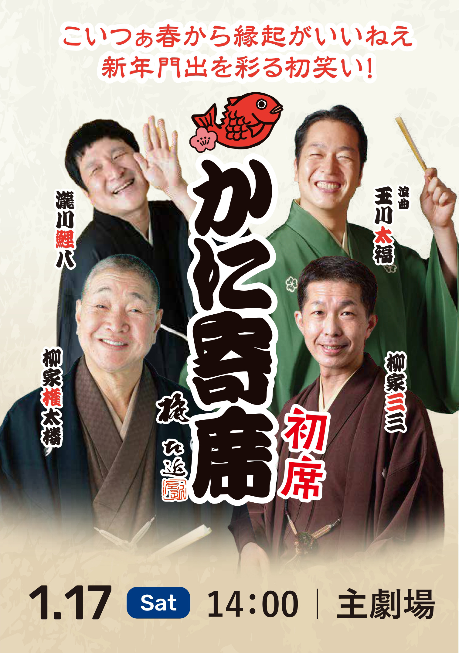 初笑いに相応しい実力派がそろい踏み。落語と浪曲、新年に華を添えるおめでたい豪華顔付けです。