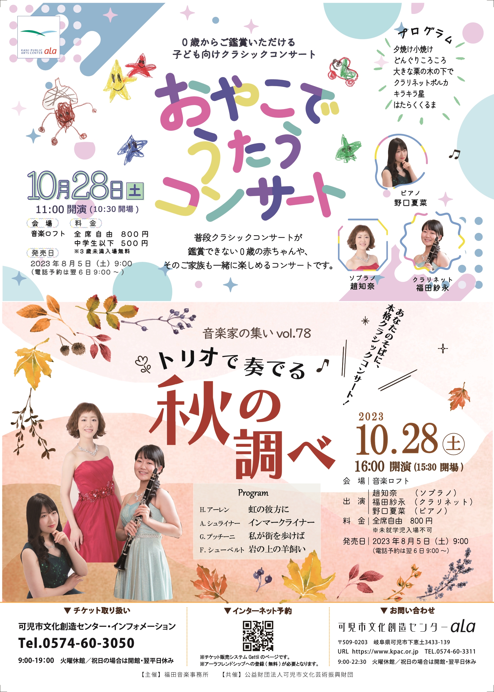 【出演】トリオぶらんこ (趙知奈(ソプラノ)、福田紗永(クラリネット)、野口夏菜(ピアノ))