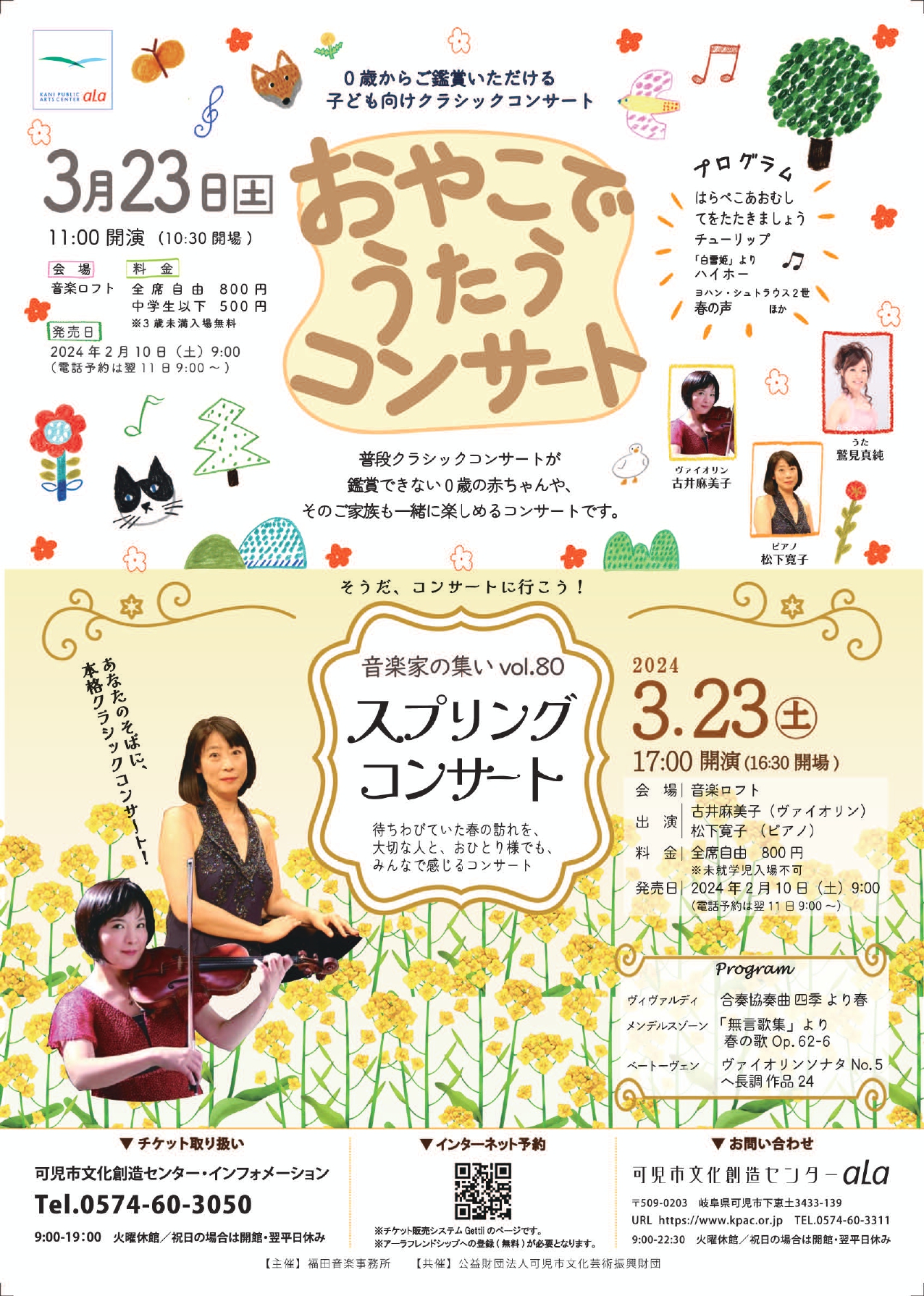 【出演】 古井麻美子(ヴァイオリン)、松下寛子(ピアノ)、鷲見真純(うた)
