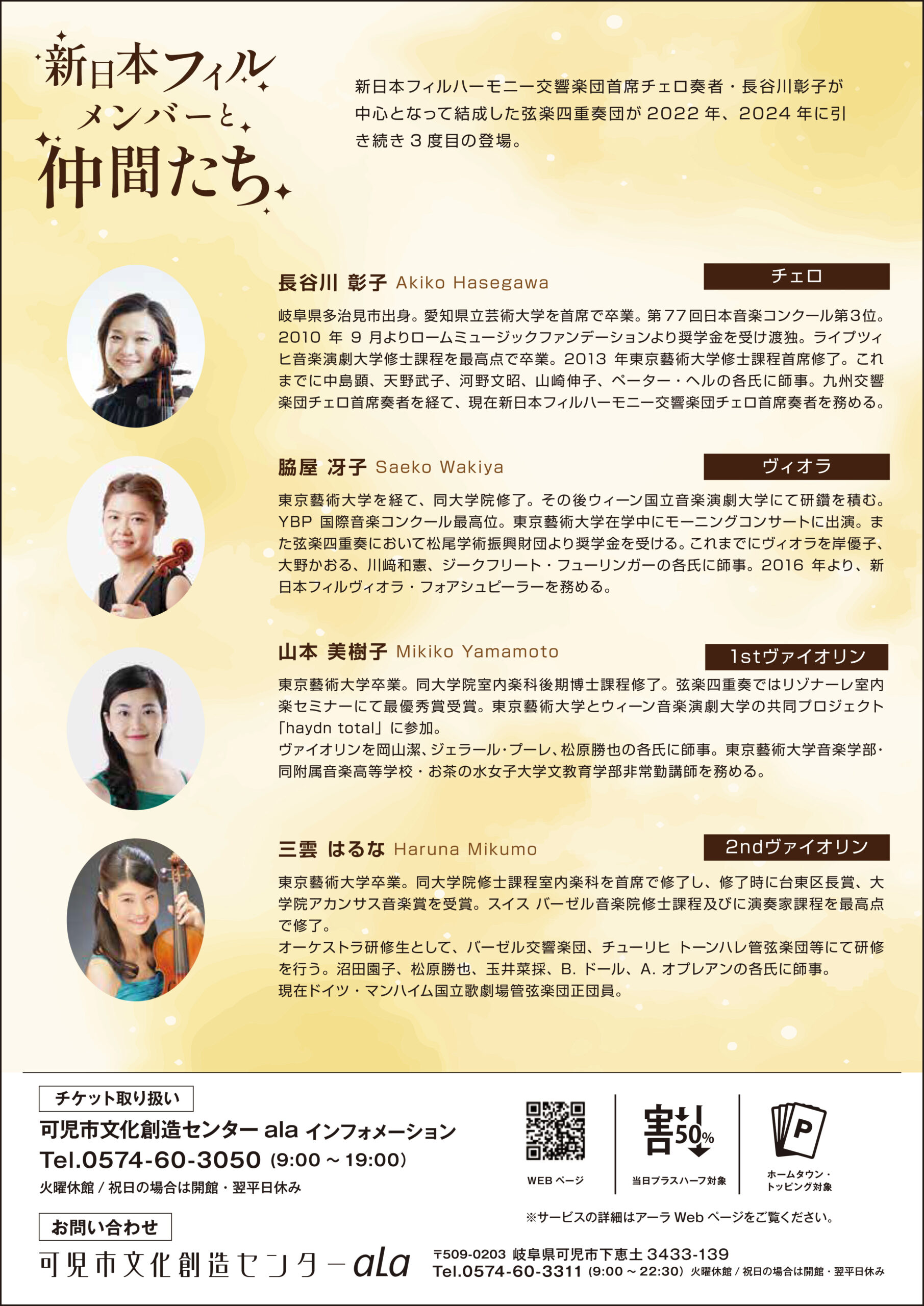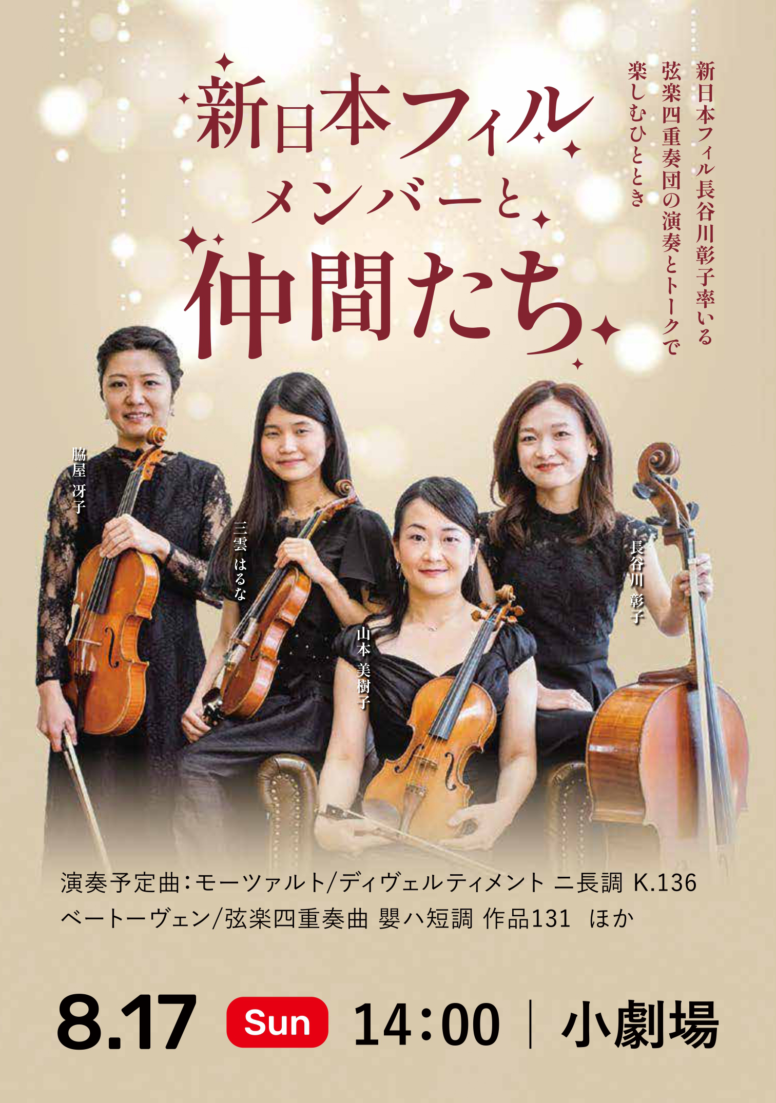 新日本フィル長谷川彰子率いる弦楽四重奏団 の演奏とトークで楽しむひととき