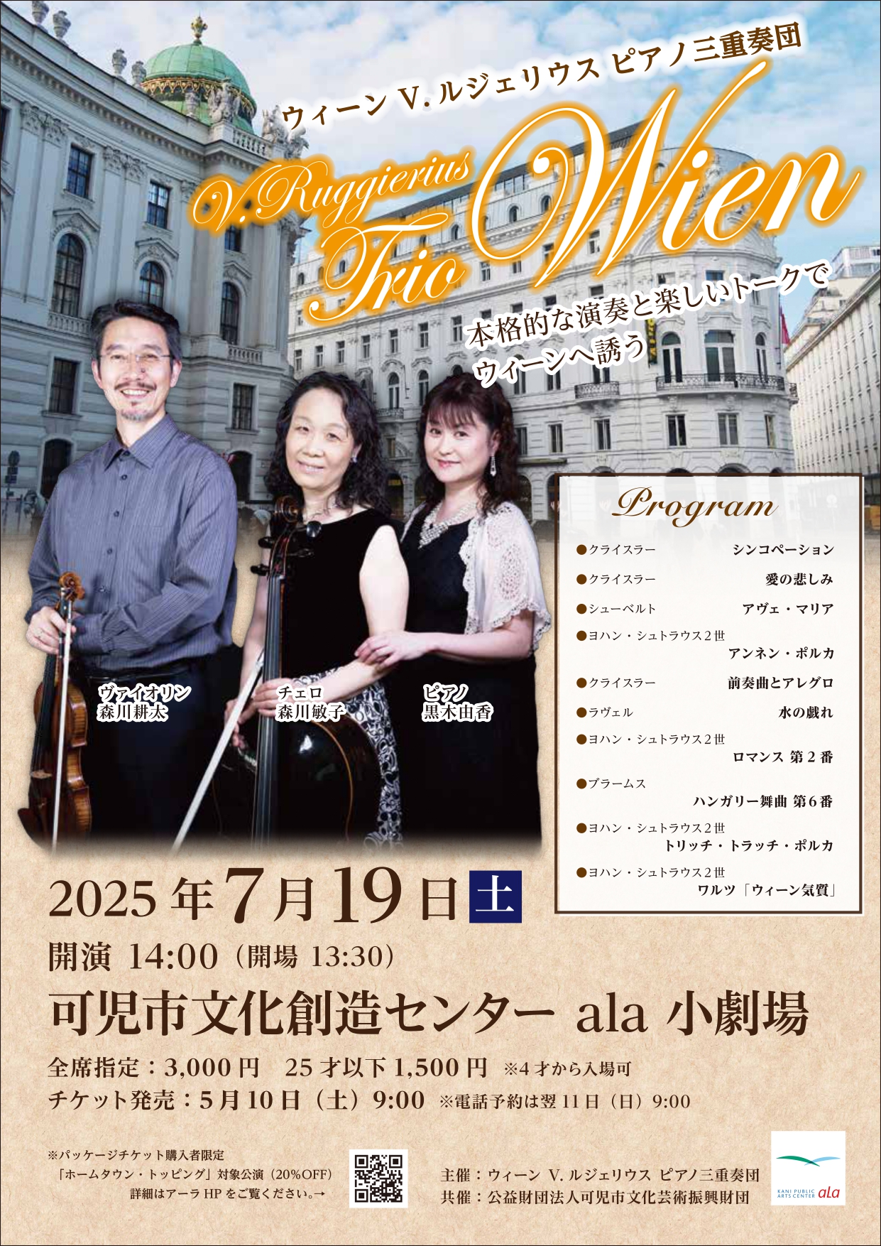 ウィーンで出会った3人が本場ウィーン仕込みの息の合った演奏と楽しいトークで素敵なひとときをお届けします。