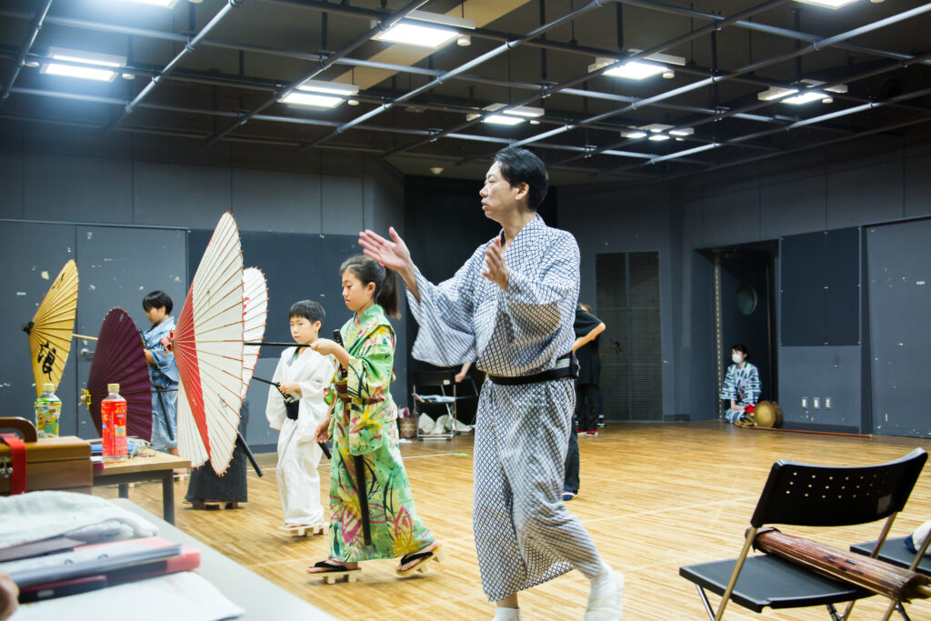 覚悟が決まったはいいが、さあ、ここからが大変。普段はお師匠さんの指導を受けながら舞台をやっていた身から、素人の大人たちはおろか、元気な子どもたちまで、二演目分の指導を自らやることに。加えて自分たちの演目の稽古も。当初は月に二回もやればいいかと考えていた稽古も、やっぱり毎週やることになり、公職五人男の方々は元より多忙の身を削っての稽古、子どもだって今どきはあれこれ忙しい、中々全員勢揃いといかないながら、何とかセリフを入れ、振りを入れ、時に師匠の監修も受け、少しずつ仕上げていく。