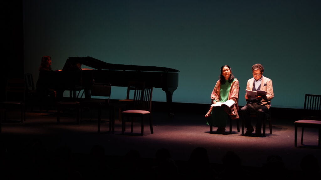 初めての朗読劇でピアノ演奏も素敵で、映像と想像の世界に酔いしれておりました。次回も是非訪れたいと思います。ラサール石井さんの熱量と中村雅俊さん、真野響子さんの思い入れ深い劇に感動のひとときとなりました。ありがとうございました。(60代・女性)