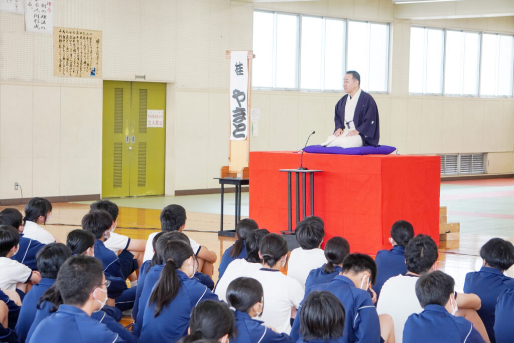 昨年の初実施で大好評を博した「おでかけ落語会。」今年は6月某日に市内の中学・高校を巡回してきました。