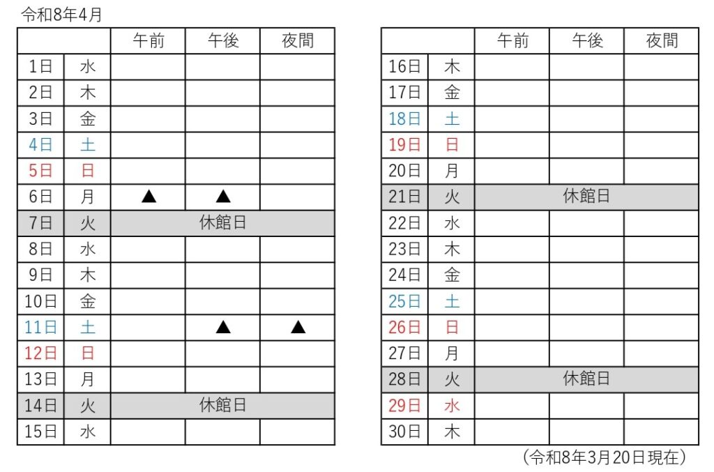 ▲の付いている時間帯は駐車場の混雑が予想されています。ご来場の際はできるだけ公共交通機関をご利用いただきますよう、お願いいたします。なお、催し物の追加・変更等により混雑予測とは異なる場合がございますので、あらかじめご了承ください。