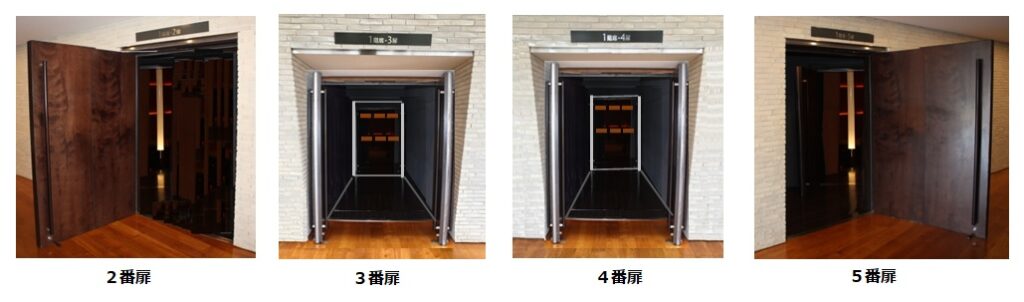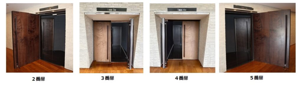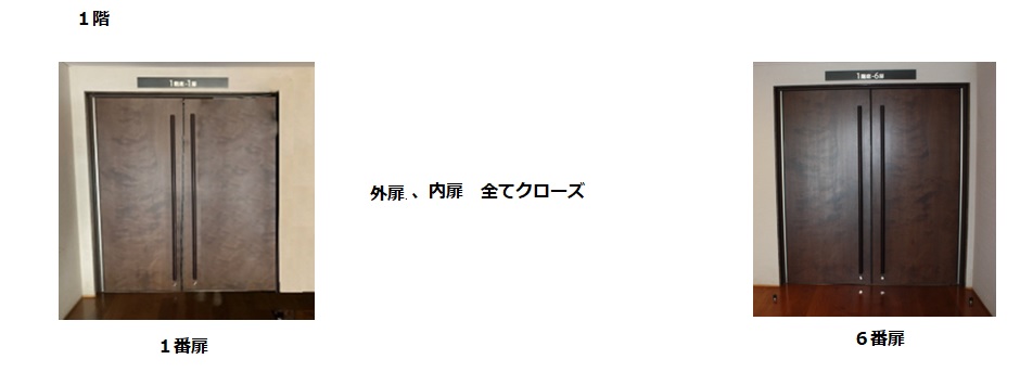 外扉 2番、5番オープン 3番 左扉、4番 右扉 片側クローズ
