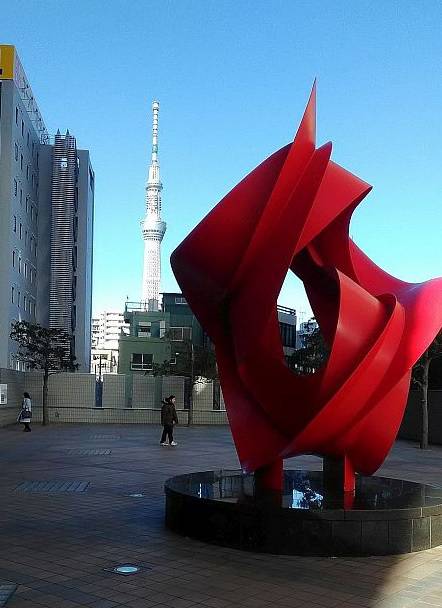 すみだトリフォニーホールを後にしながら歩いていると何と、ビルとビルの間から東京スカイツリーが見えるではありませんか。記念に写真を撮り次へと向かいました。