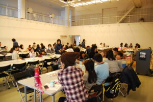 12月23日(土)、アーラのイルミネーション点灯に合わせて行われる恒例の「手作りランプを作ろう!」のワークショップが財団との共催により美術ロフトにで行われました。13時に10名のalaクルーズのスタッフが集合。朝礼と共に澤野氏より本日の手順等の説明があり準備開始です。このワークショップも5回目となり、スタッフもスムーズに動けたように思います。14時30分、いよいよ受付開始です。今回は51名の参加でした。今年は季節柄インフルエンザ等で欠席の方が、例年になく多いようでした。まず、スタッフからタイムスケジュールや制作に関する説明等があり制作開始です。参加者は初めての方も多かったのですが、既にランプのイメージが出来ているようでスムーズに開始されました。回数を重ねる毎にレベルが高くなっていくような気がしました。LEDライトを点けるとどんな感じになるか私達スタッフも点灯式が楽しみになりました。1時間40分の制作時間もあっという間に終了。そして各作品に名札を付け乾燥。参加者には一時休憩・待機して頂き、スタッフは会場片付けをして、作品を並べるテーブル20脚を点灯式会場(芝生広場)に移動。そして参加者には制作会場に再び集合して頂き本日の点灯者の選出です。誕生日を基準にして、愛甲さくらさん(10歳)と梅田りのさん(9歳)の2名の小学生が選出されました。その後A・B二つのグループに分かれ、点灯式会場まで誘導。それぞれの作品をテーブルに設置して、いよいよアーラのイルミネーションと共に点灯です。5・4・3・・・とカウントダウンして点灯! みんなの歓声が響き渡りました。ランプの前方にはalaクルーズ制作のシンデレラ姫をモチーフにした『夢』もあります。冬の冷たい空気の中、小さな手作りランプが心暖まる光を放ち、点灯されたイルミネーションに駆け寄る子供たちの歓声と光景を今年も見守ることが出来、この一年を感謝の気持ちで締めくくることが出来ました。ワークショップに参加して下さった皆様、今年も感動をありがとうございました。