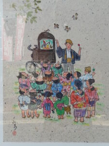 市民の皆さんに、紙コップや色紙など身近な材料を使って、飾ったり遊んだりする“もの”創りに参加していただき、創作活動を楽しんでいただける機会を提供する事業として、郡上八幡市在住で造形作家の水野政雄氏を講師にお迎えし、今回で5回目となるアート展とワークショップを開催しました。8月23日(土)~31日(日)までalaギャラリーで開催し、昭和の楽しさと懐かしさ、ノスタルジックな世界を描いた数々の作品を25点余り展示しました。金魚売りやチンドン屋、今では見ることのできない紙芝居など懐かしい風景が思い出とともに蘇ってくるようで心を癒してくれました。また、郡上おどりのポスターも6点展示され開催期間中約1000人の方々が楽しまれました。