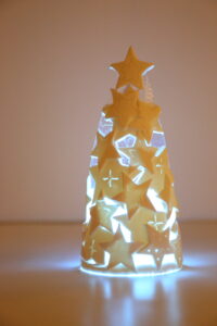 昨年大好評だった、紙粘土とLED電球を使ってオリジナルランプを作るワークショップ『手作りランプをつくろう』が今年も12月10日に開催されました。締め切り前に定員いっぱいになり、65組100人の参加者が楽しみながら製作しました。受付時にキットを受け取りスタッフの説明の後、早速作り始めました。透明のプラスチックカップにLEDライトのキットを使って紙ねんどをかぶせて好きなものを自由にデザイン、色づけして完成。イルミネーションの点灯式に合わせ各自点灯。子ども達の歓声がalaに響き渡っていました。作品は持ち帰り、各家庭で光輝いたことでしょう。子ども達の喜んだ顔を見て、スタッフもやりがいを感じたことと思います。やってよかったと!
