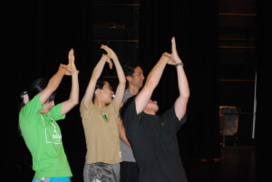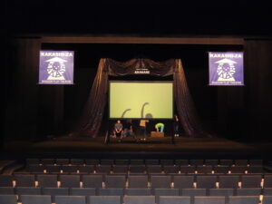 平成27年8月2日(日)劇団かかし座の“Hand Shadows ANIMARE (ハンド シャドウズ アニマーレ)”がala小劇場で開催されました。ala開館時、映像シアターで開催された影絵がとても印象に残り、クルーズでも開催しようと、その時の情報をもとに劇団かかし座の見学に行きました。手影絵といえば、子どもの頃、指でキツネやウサギの形を作り障子に光を当てて楽しんだノスタルジアにかられる方も多いのではないでしょうか。現在では住宅様式も変わり、障子も殆ど見受けられなくなりました。また、子どもたちの遊びも様変わりし、影絵で遊ぶ光景はなくなってしまいました。 素手と身体から生み出される動物などのキャラクターが、出演者4人の鍛え抜かれた技によりユーモア溢れるストーリーを繰り広げます。命を吹き込まれた影たちの究極のパフォーマンスは、素手ならではのしなやかな動きと素早い場面転換が圧巻で、いきいきとした物語に引き込まれていきます。そんな手影絵をぜひalaでと思い、クルーズが昨年計画し何回も企画会議を行い実施しました。