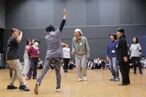 近藤:それはもう絶対に出ます。稽古を見ていると、はっきりわかりますよ。10代の若い人たちは、体は動くんだけどどこか恥ずかしさを伴っているし、40才以上になると恥ずかしさがなくなってくるみたい。そういう違いや個性は明らかに出ます。60才以上の方も、かなりパワーがあります。これ、可児市民の皆さんの特徴なんじゃない?(笑)面白いなと思って。それぞれの個性をベースに、日常の流れの中のシーンづくりに生かしていくかもしれませんね。